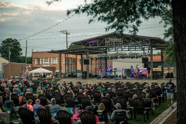 The Carolina West Wireless Community Commons venue is an inviting, family-friendly public space that features the new Wilkes Communications Pavilion stage, a concert lawn, a versatile hardscape area, firepits, and a connector to the Yadkin River Greenway. These improvements are a part of a multi-phase revitalization effort planned for Wilkesboro's downtown district. This park is located at 102 West Main Street in the heart of Historic Downtown Wilkesboro